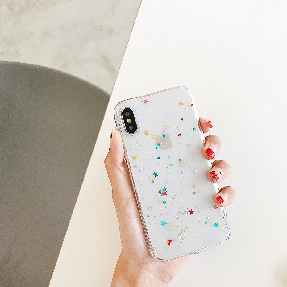 discount Qianliyao For iphone 11 Pro Max XS Max XR Case Bling Colorful Star Silicon Clear Cover Glitter Case