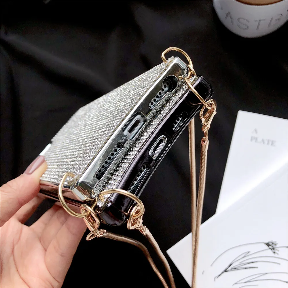 Finest Bling Glitter Rhinestone Diamond Crossbody Case For iPhone XS MAX XR X 6 8 7 Plus 11 Pro Cover Wome