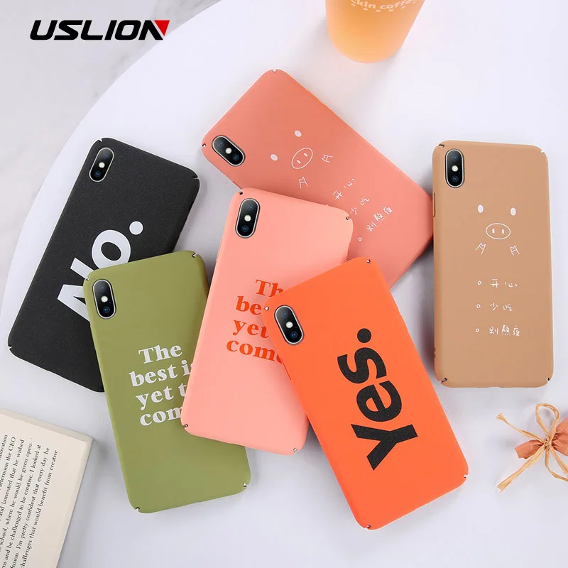 low cost USLION Simple Letter Case For iPhone 7 6 6S 8 Plus Matte Phone Cases For iPhone X XR XS Max 11 Pro