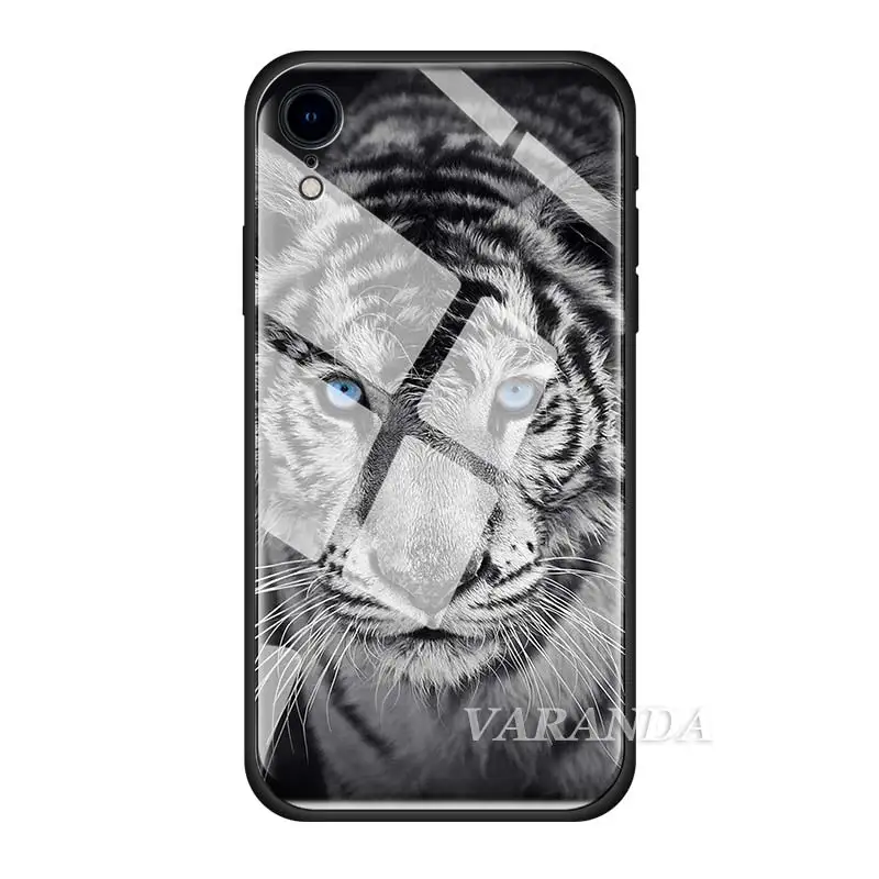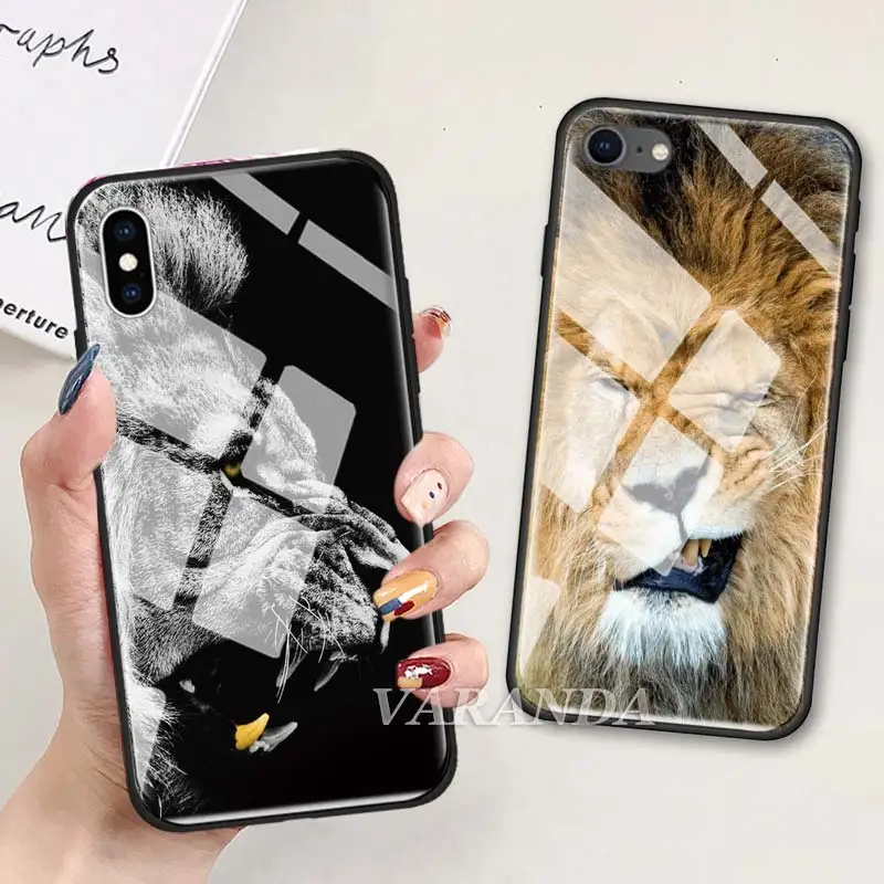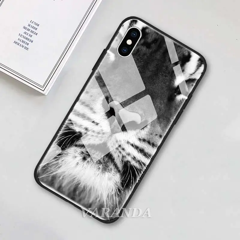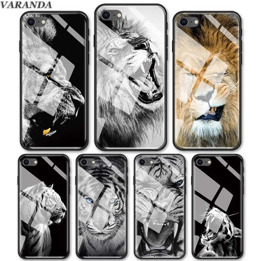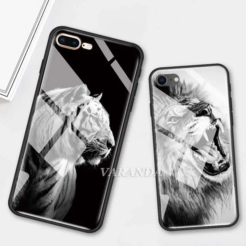lower price Tempered Glass Case for iPhone 7 8 Plus 6 6s Plus XS MAX X XR Lion & tiger Glass Phone Cover Coque