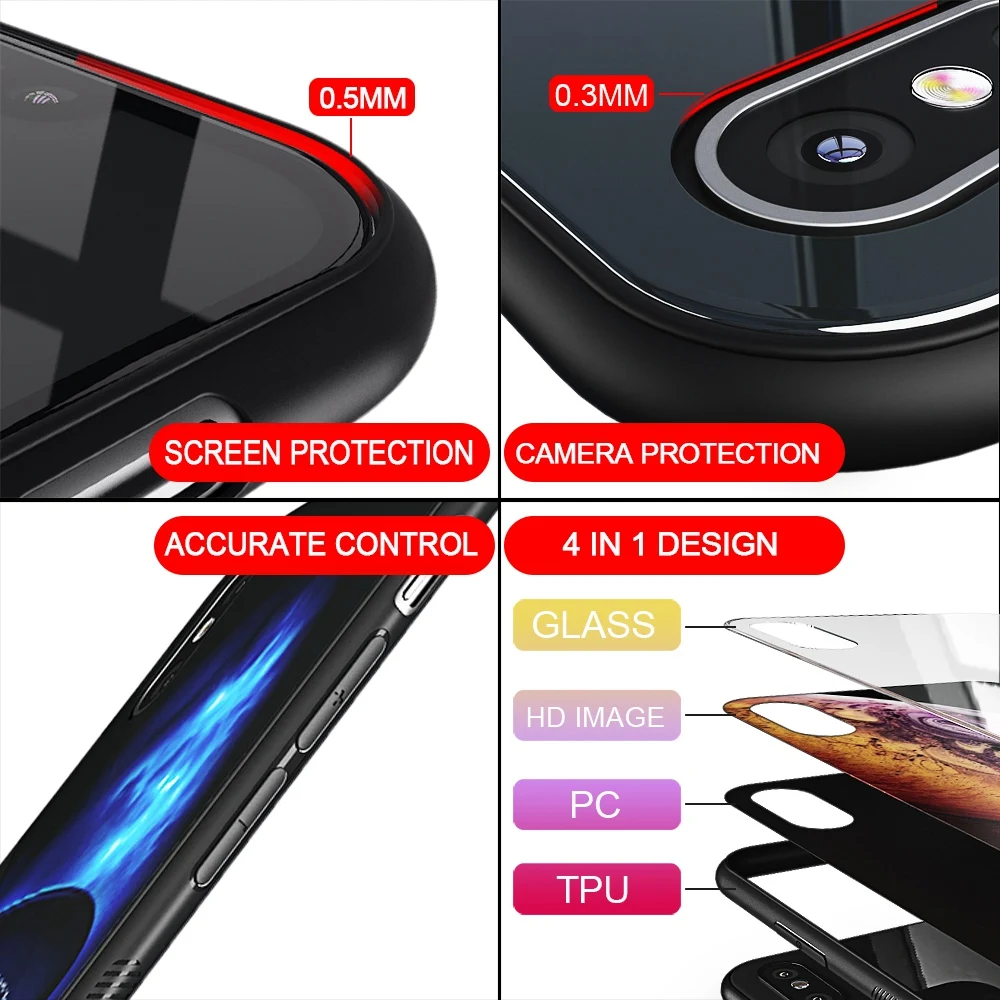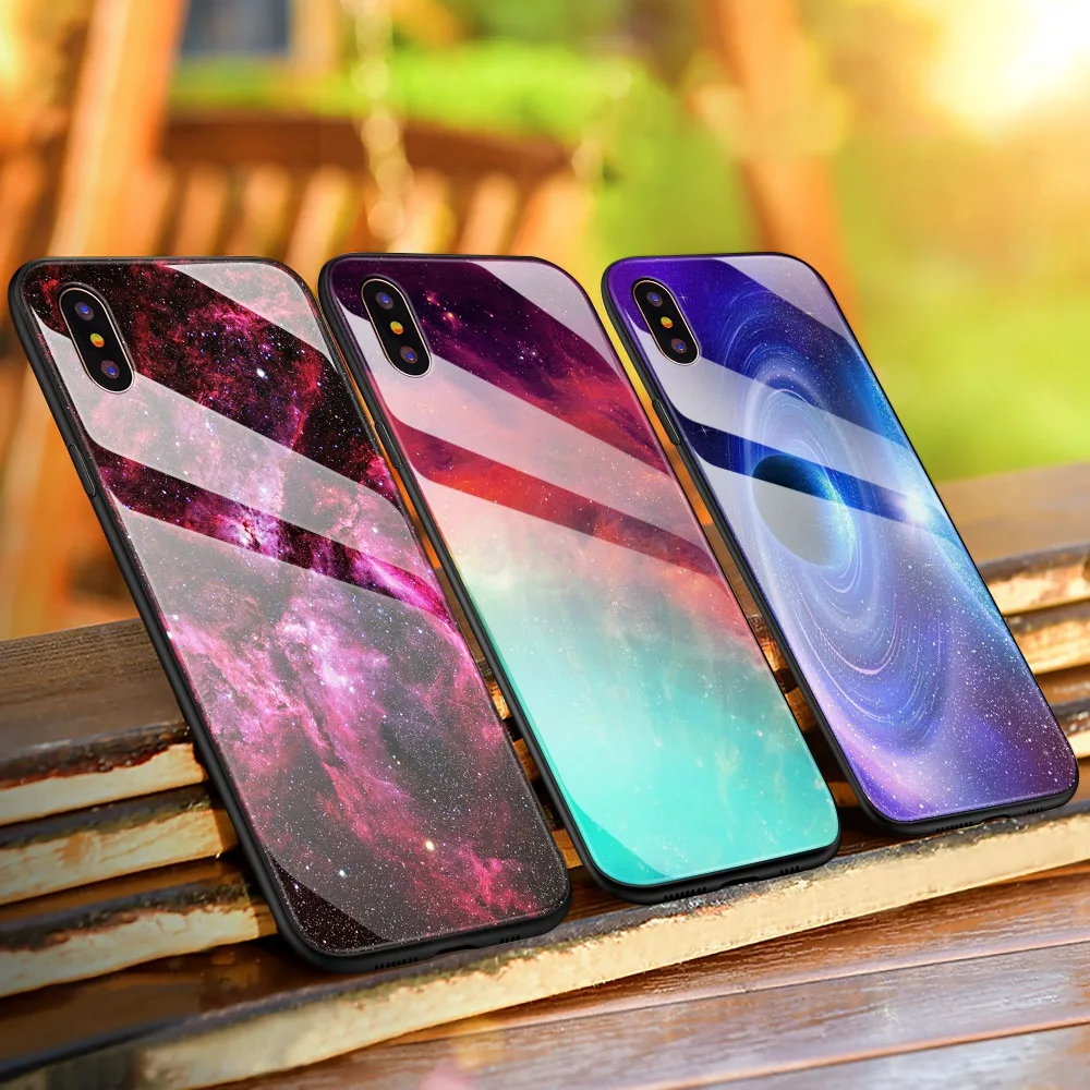 New TOMKAS Luxury Space Cover Case for iPhone X XS MAX XR XS Glass Silicone Phone Case for iPhone 7 8 P