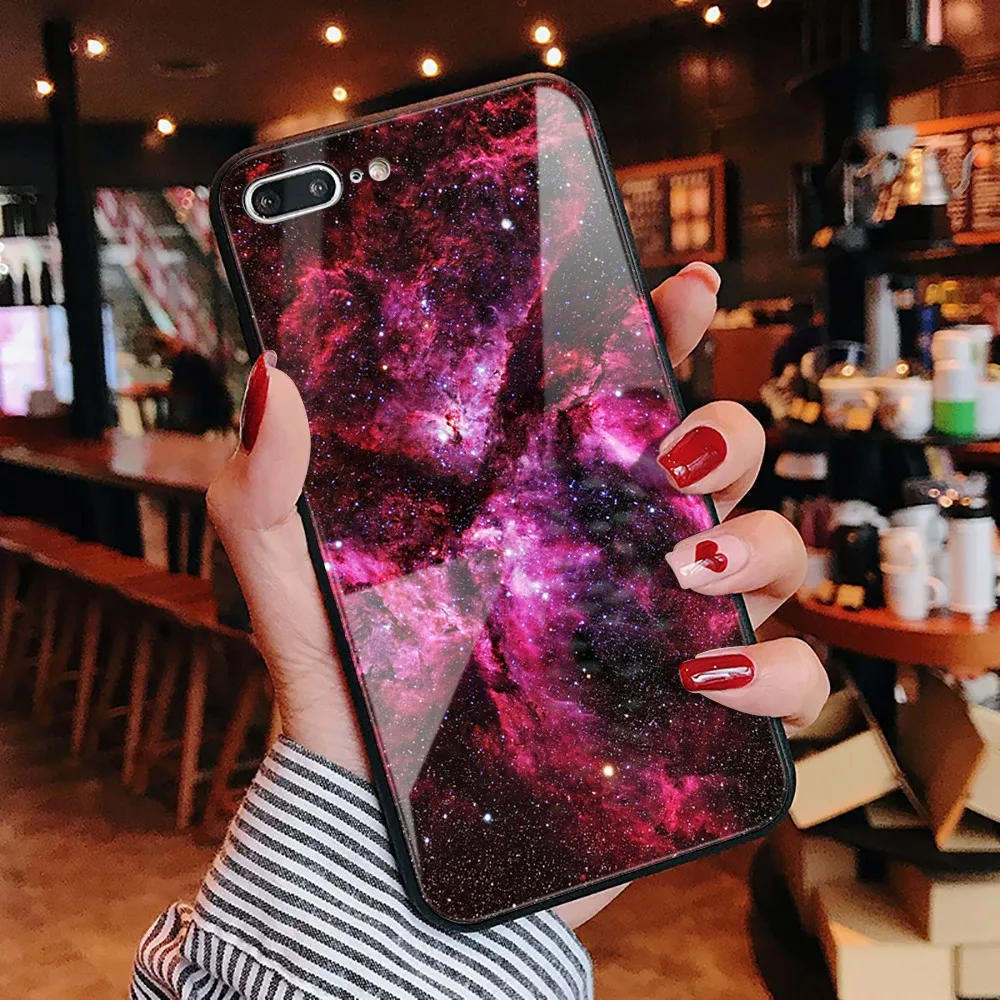 price reduction TOMKAS Luxury Space Cover Case for iPhone X XS MAX XR XS Glass Silicone Phone Case for iPhone 7 8 P