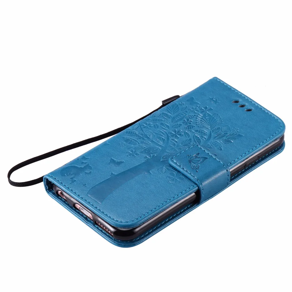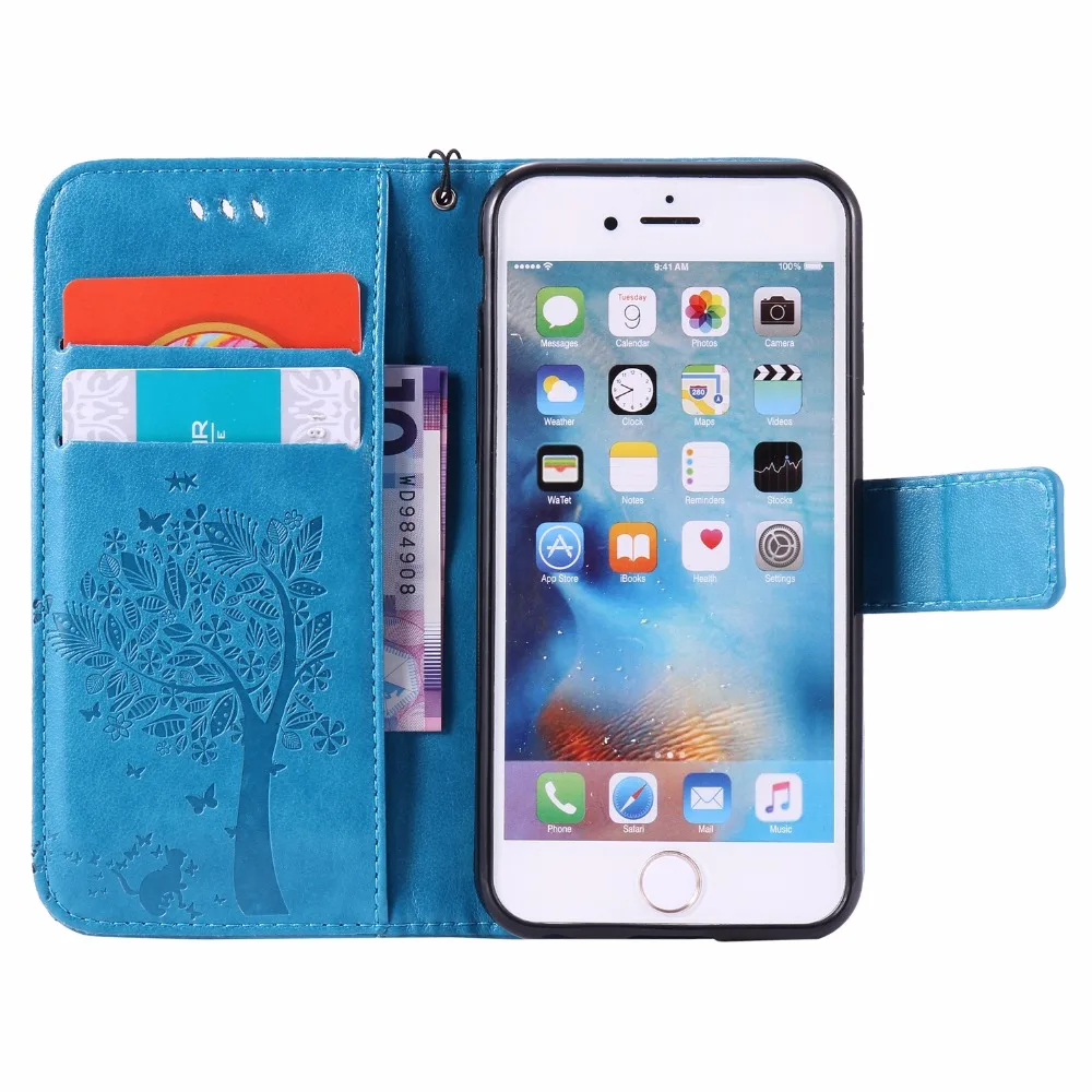 wonderful Leather Cases Lovely Tree Cat Pattern For iPhone X 8 7 Plus 4 4S 5C 5S SE 6S Retro Phone Bags For i
